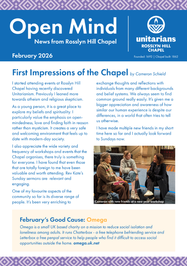 Open Mind Newsletter February 2026 Chapel Office3 hours ago1 min readDownload the edition of our newsletter which covers events and services for February.Click to download:Open Mind-Feb26.pdfDownload PDF • 1.36MB